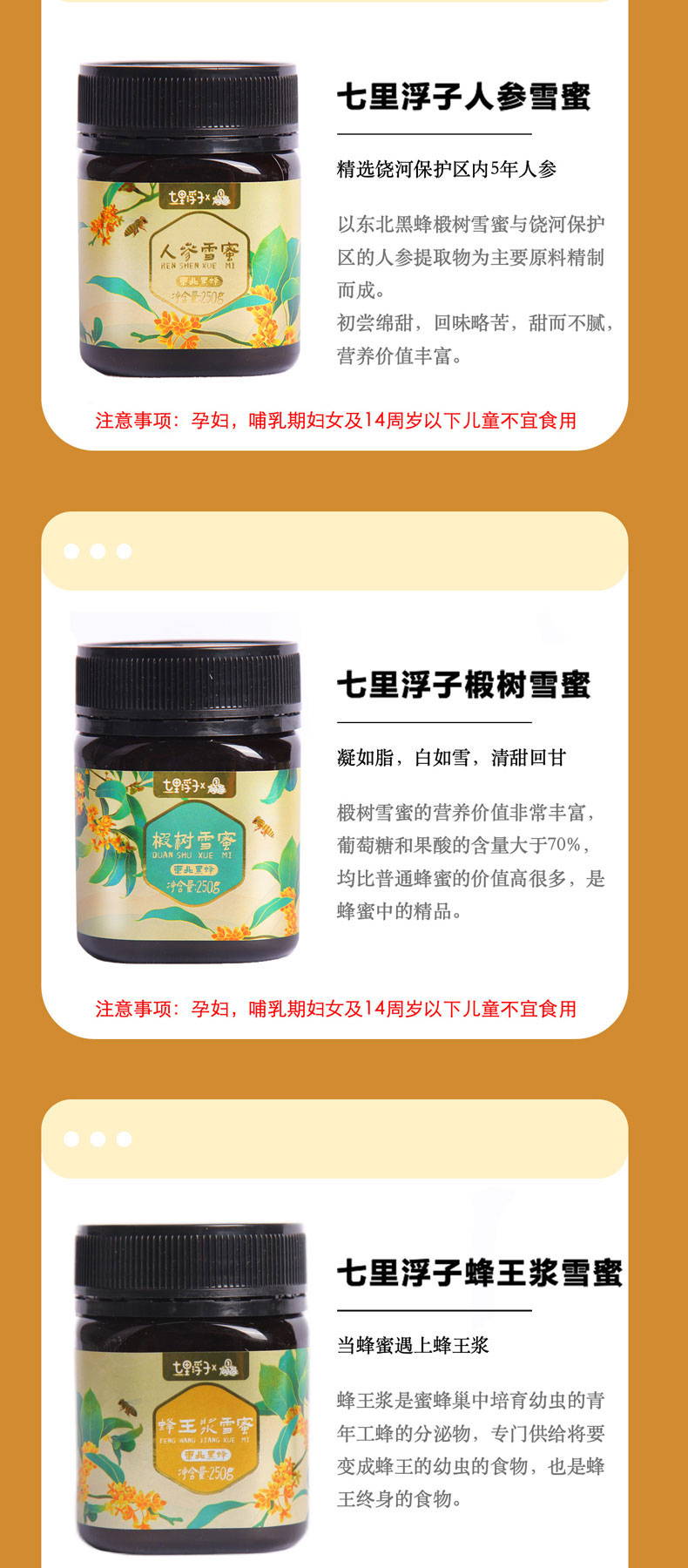 商品名称:七里浮子/山海经花神雪蜜礼盒1000g