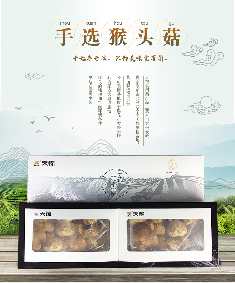 产品规格:天锦山水系列手选猴头菇100g*2盒