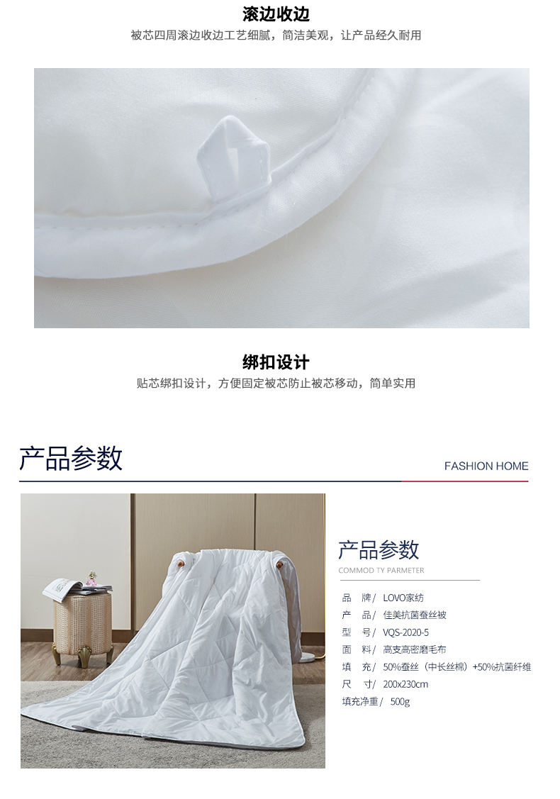 商品名称:LOVO/乐蜗家纺佳美蚕丝抗菌被500gVQS-2020-5