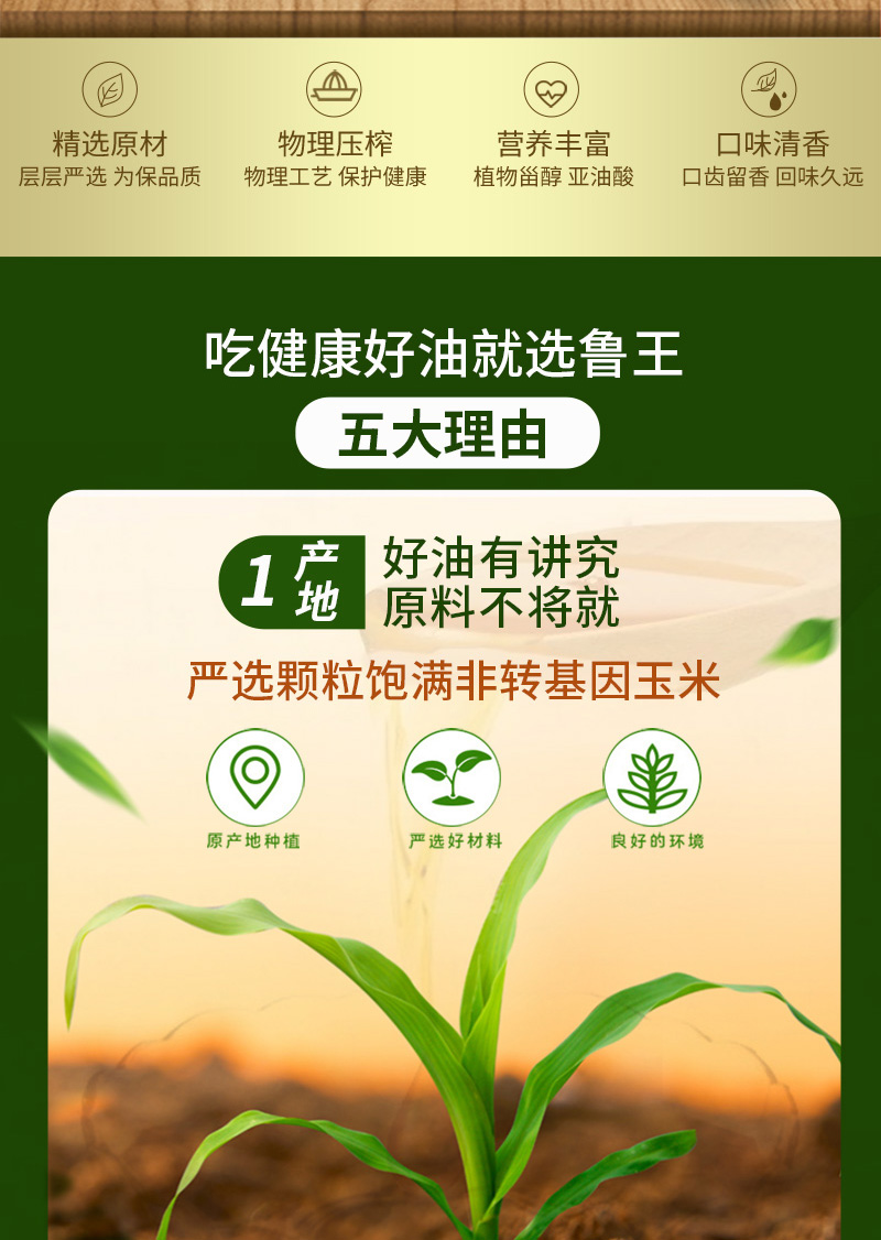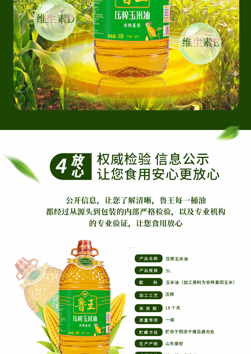 商品名称:鲁王绿色健康非转基因压榨玉米油5L