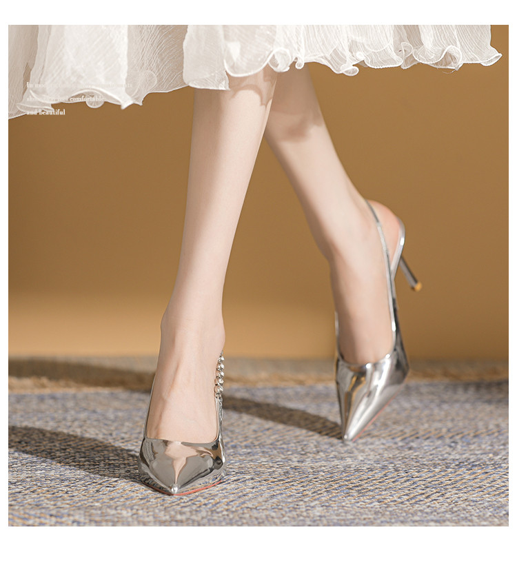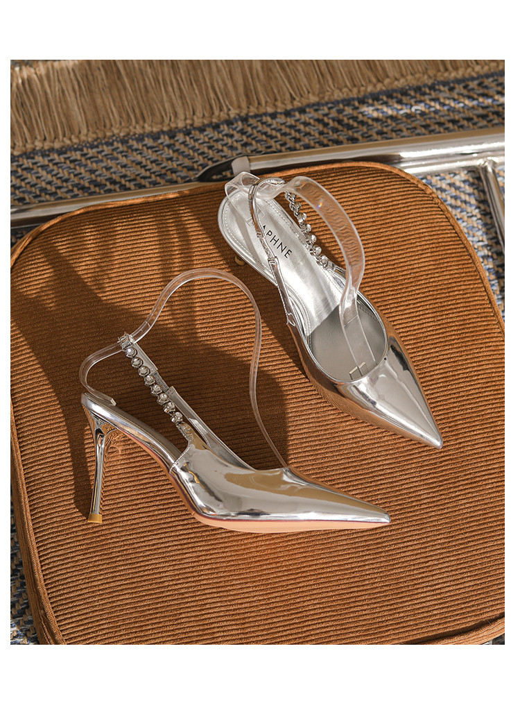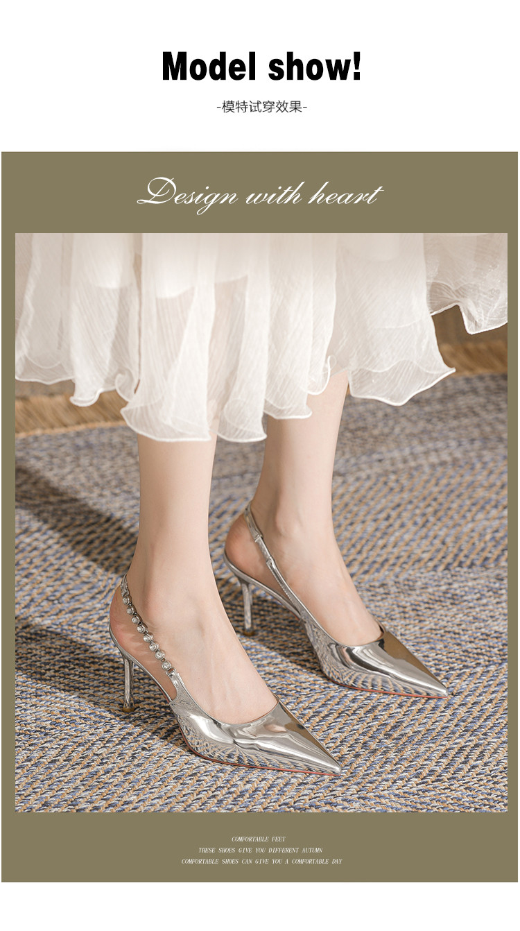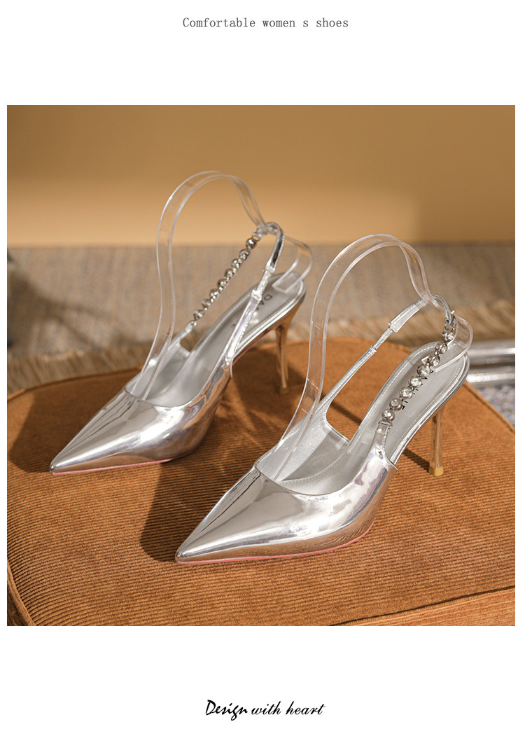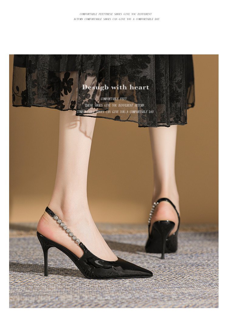 【热卖爆款】夏季尖头细跟高跟鞋女后空一字带凉鞋时尚单鞋通勤鞋 975383