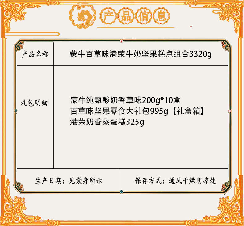 商品名称:【京东配送】蒙牛百草味港荣牛奶坚果糕点组合3320g