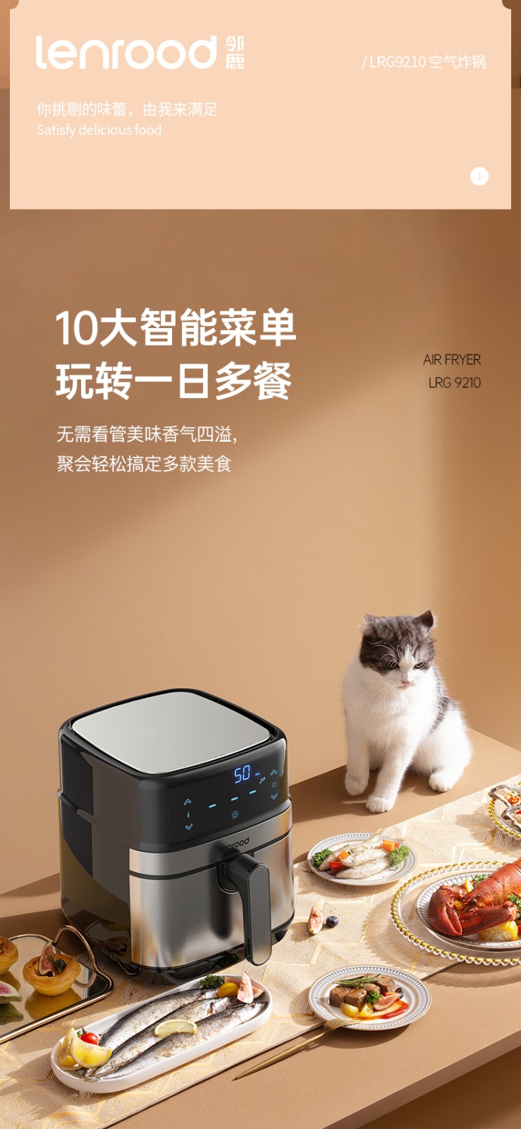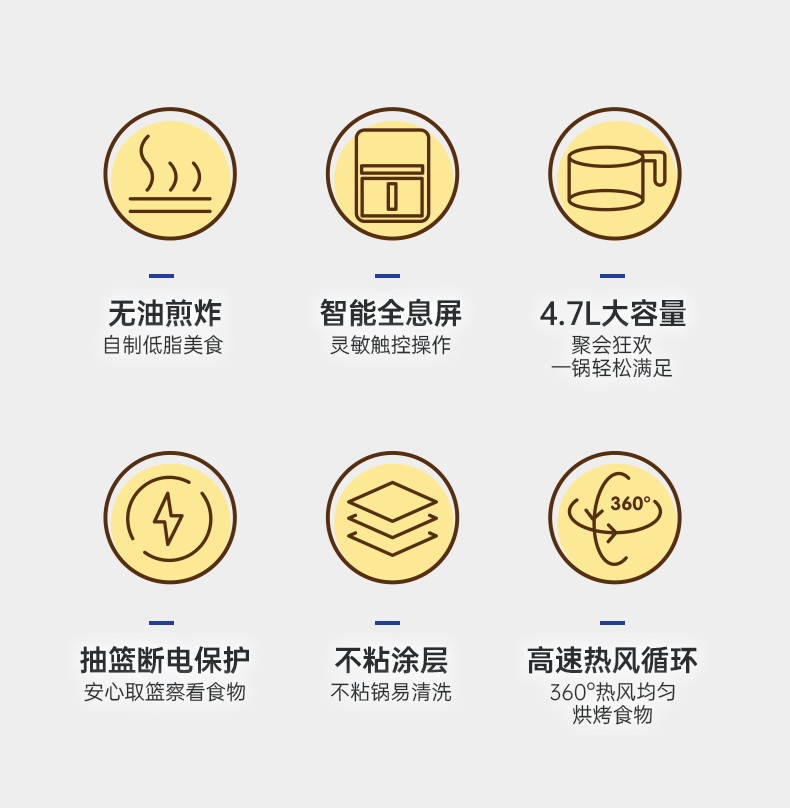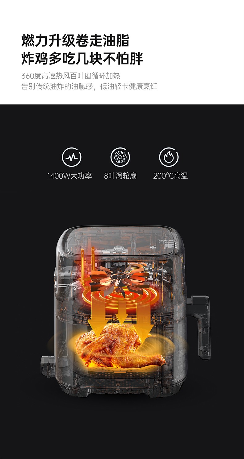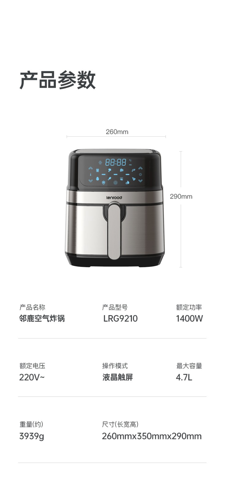 商品名称:LENROOD/邻鹿4.7升空气炸锅-黑色LRG9210