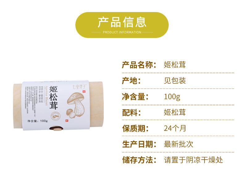 商品名称:七里浮子姬松茸100g
