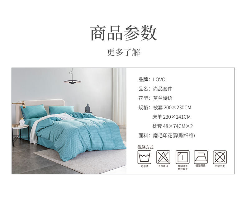商品名称:LOVO/乐蜗家纺莫兰诗语尚品床品四件套200*230cm