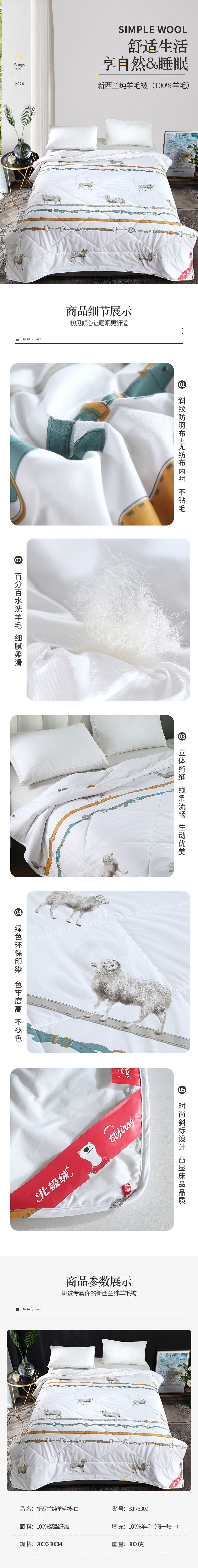 商品名称:Bejirog/北极绒新西兰纯羊毛被-白色 软包200*230cm 3000g