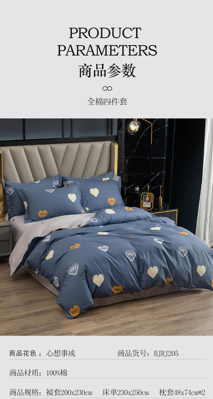 商品名称:Bejirog/北极绒心想事成全棉床品四件套200*230cm