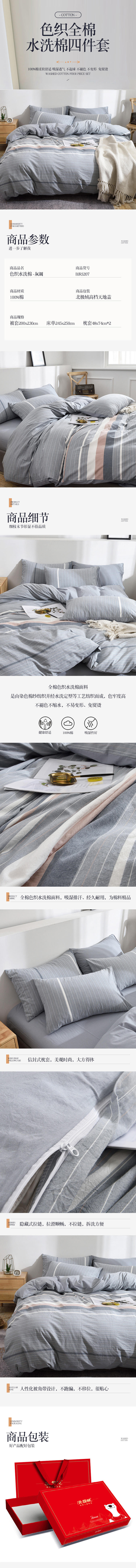 商品名称:Bejirog/北极绒色织水洗棉床品四件套-灰调200*230cm