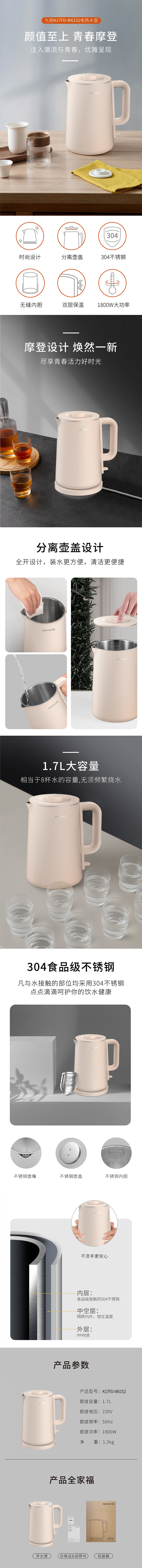商品名称:Joyoung/九阳1.7升电热水壶K17FD-W6152