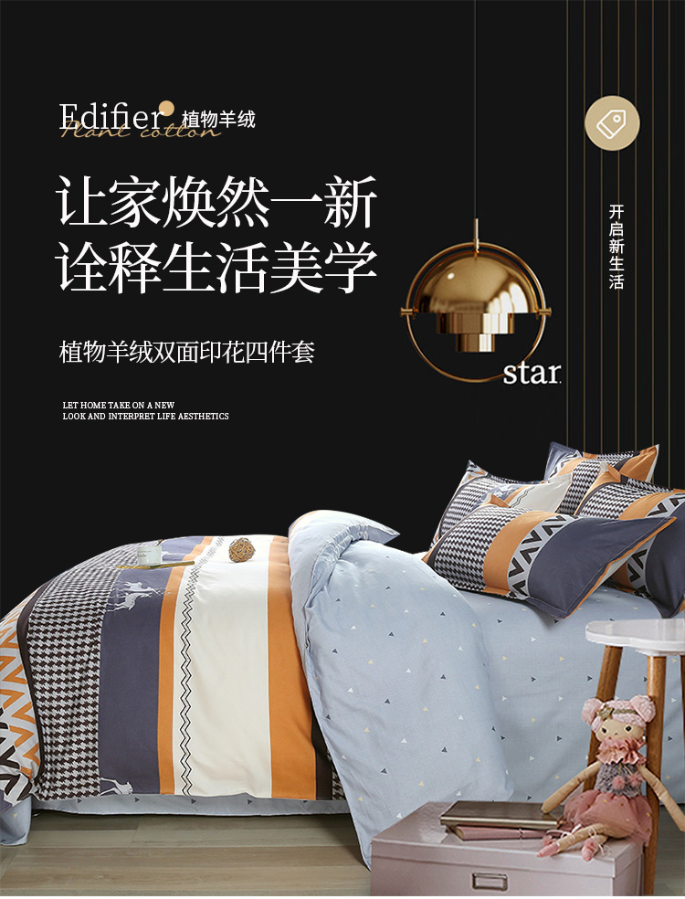 Bejirog/北极绒卡萨植物羊绒双面印花床品四件套200*230cm