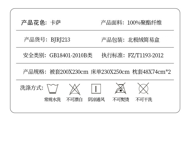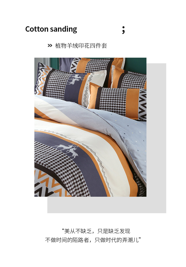 商品名称:Bejirog/北极绒卡萨植物羊绒双面印花床品四件套200*230cm