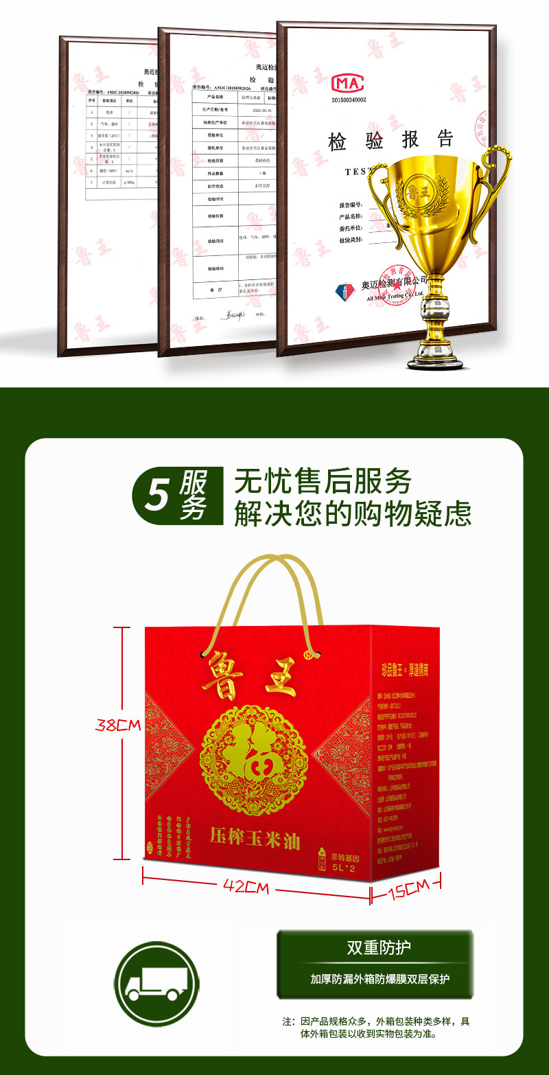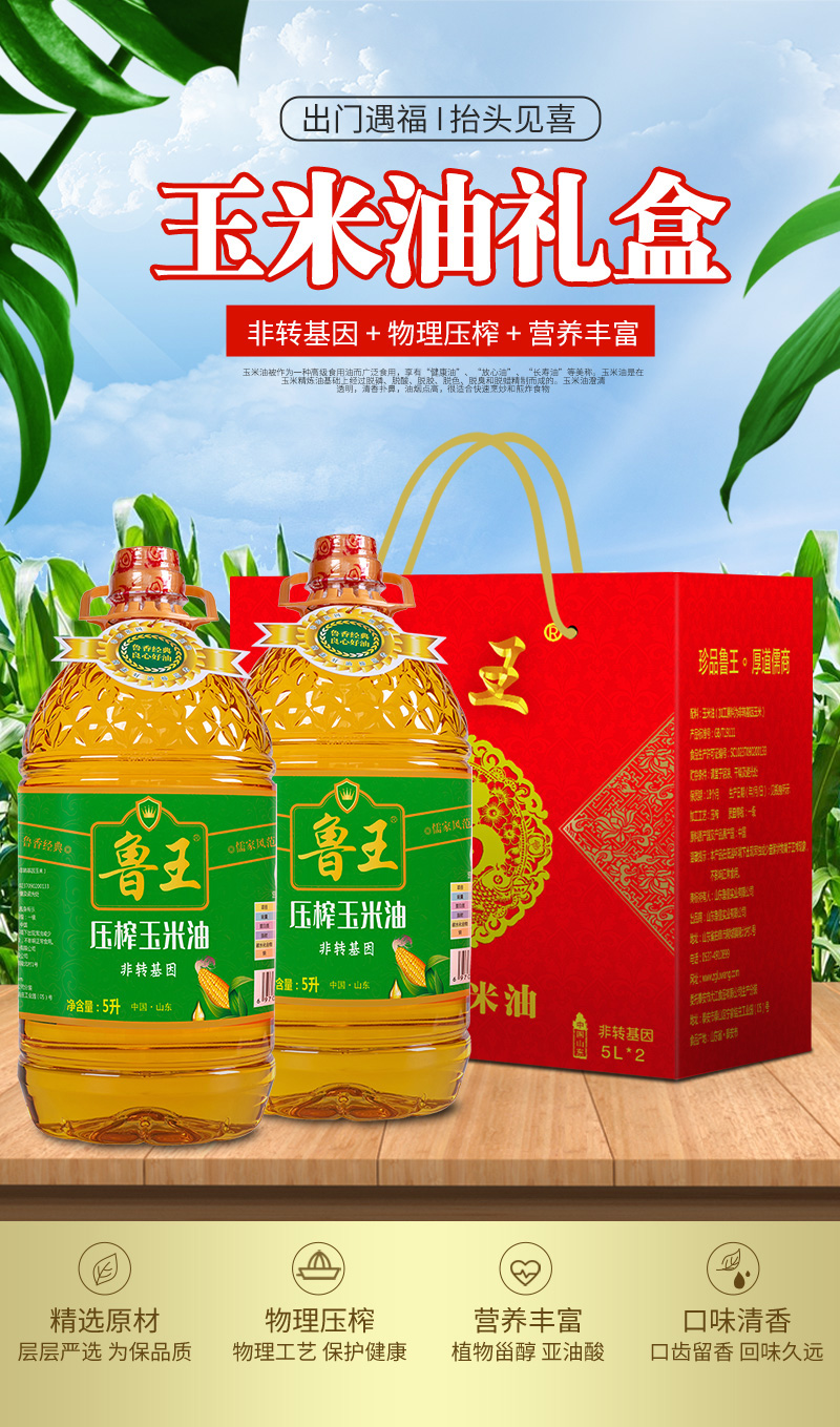 商品名称:鲁王非转基因压榨玉米油吉祥礼盒5L*2桶