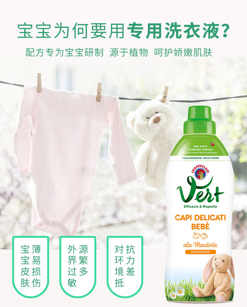 CHANTECLAIR/大公鸡管家贝贝甜杏仁洗衣液750ml*2瓶