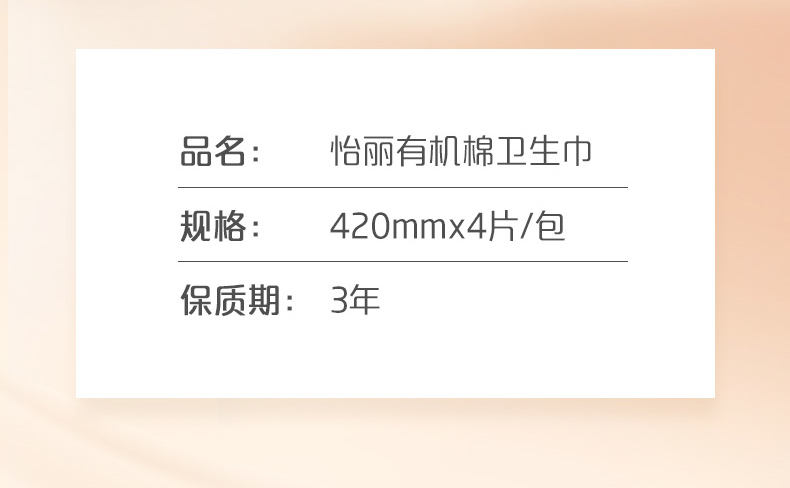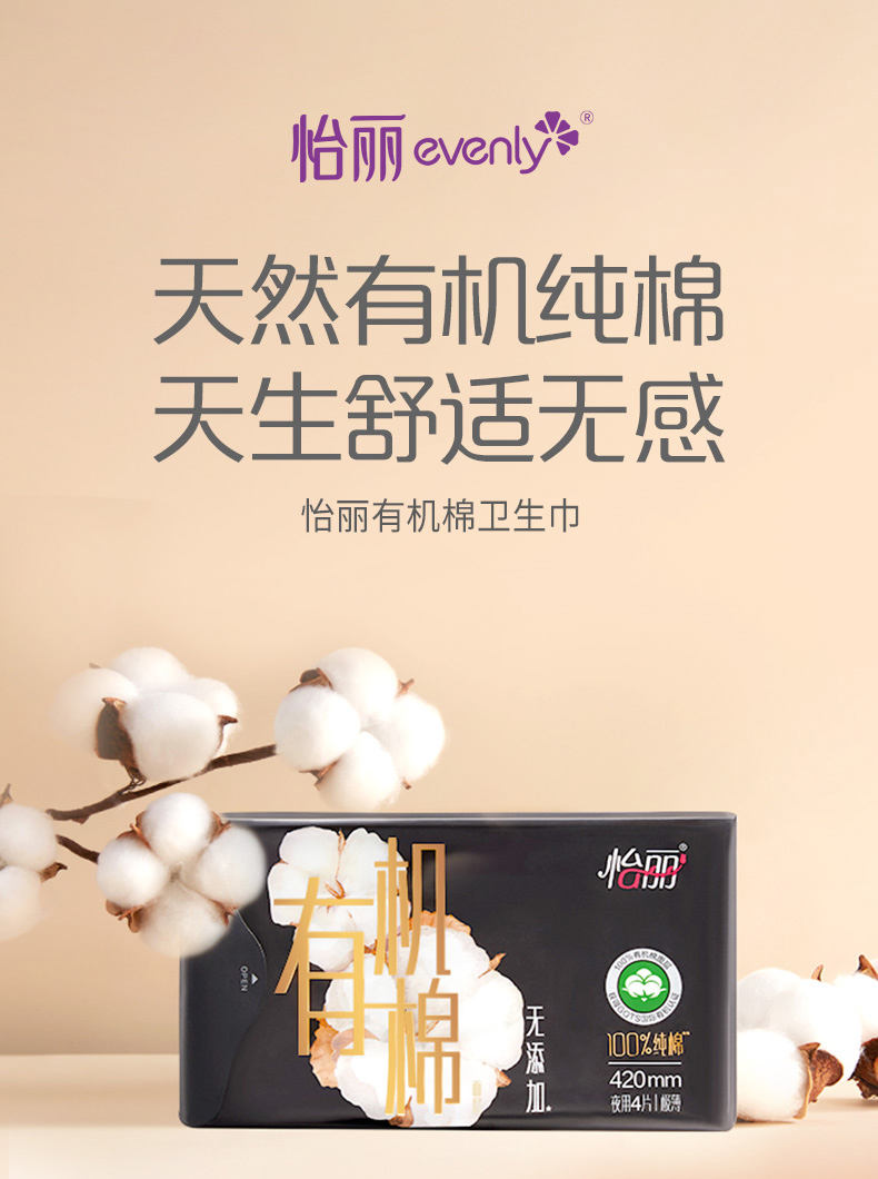 商品名称:ELIS/怡丽有机棉420mm夜用卫生巾4片*6包