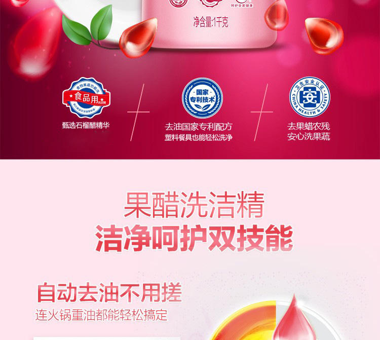 立白 果醋洗洁精1kg*1瓶+立白 miss内衣专护洗衣液480g*1瓶