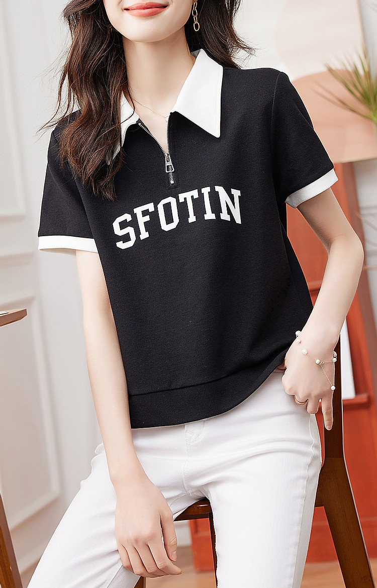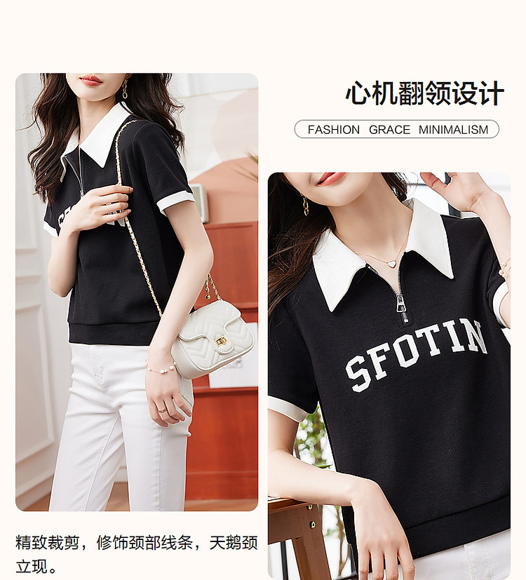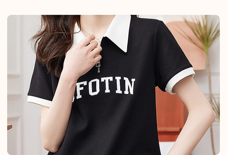 商品名称:【时尚撞色字母女式t恤】夏季翻领微弹短袖t恤女 907713