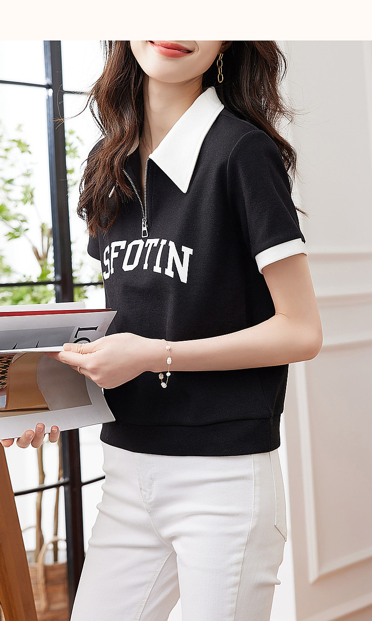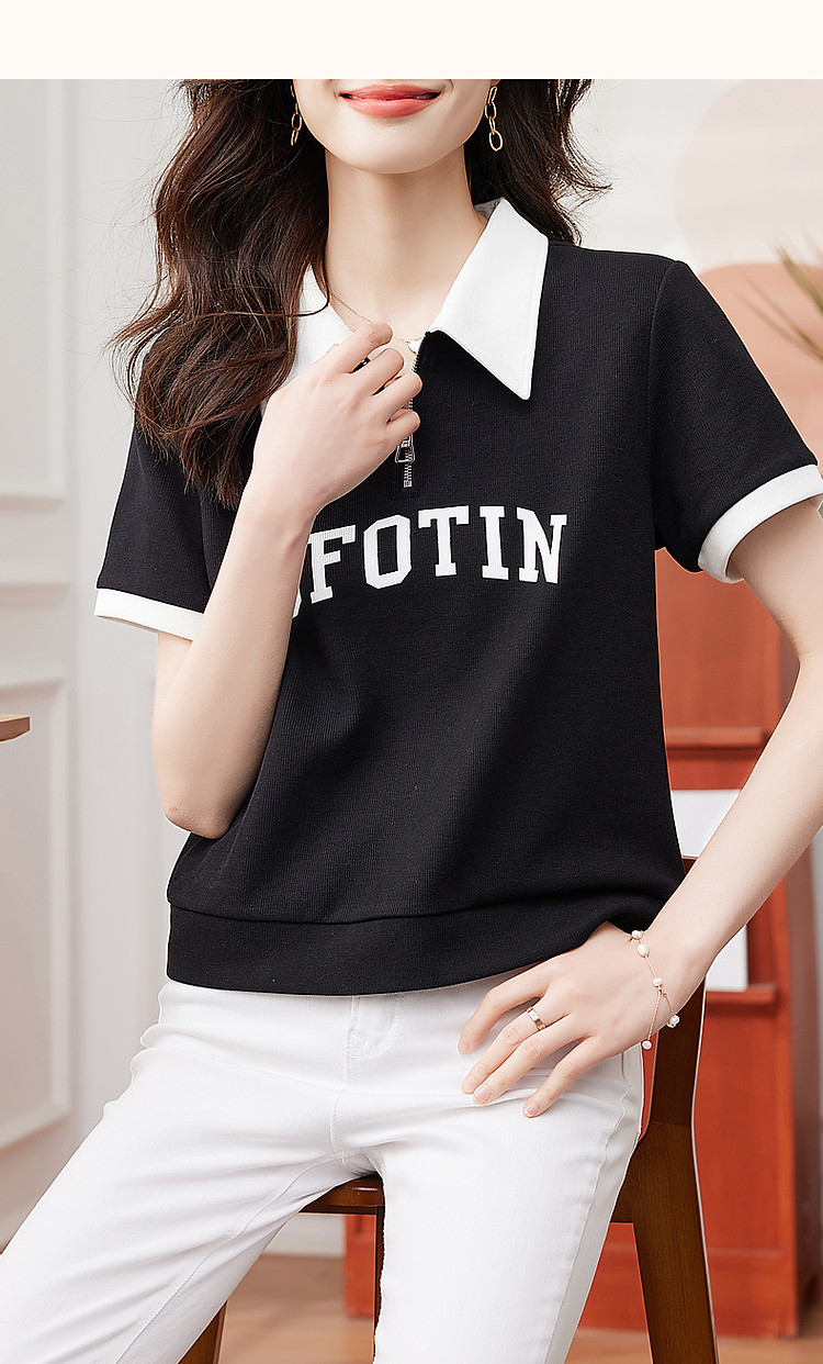 【时尚撞色字母女式t恤】夏季翻领微弹短袖t恤女 907713
