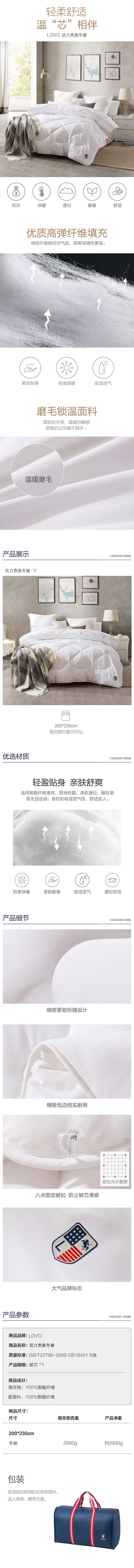 商品名称:LOVO/乐蜗家纺活力贵族冬被200*230cm 约2930g