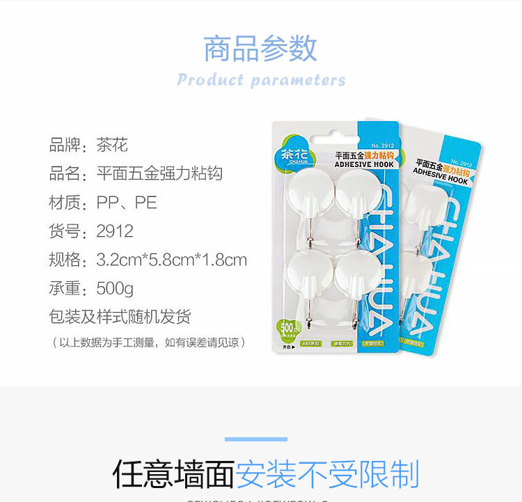 商品名称:CHAHUA/茶花五金强力型粘钩4支*8组