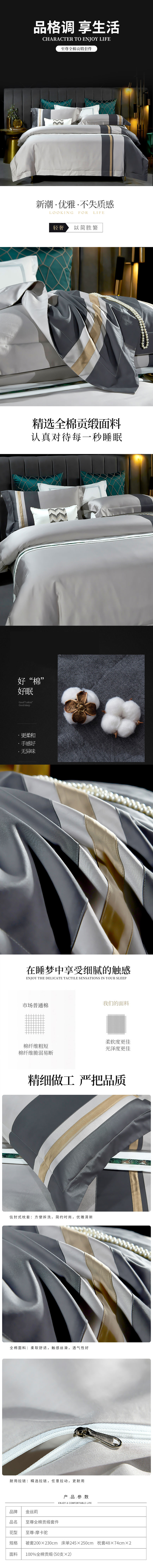 商品名称:KINTHERI/金丝莉摩卡驼全棉贡缎至尊床品四件套200*230cm
