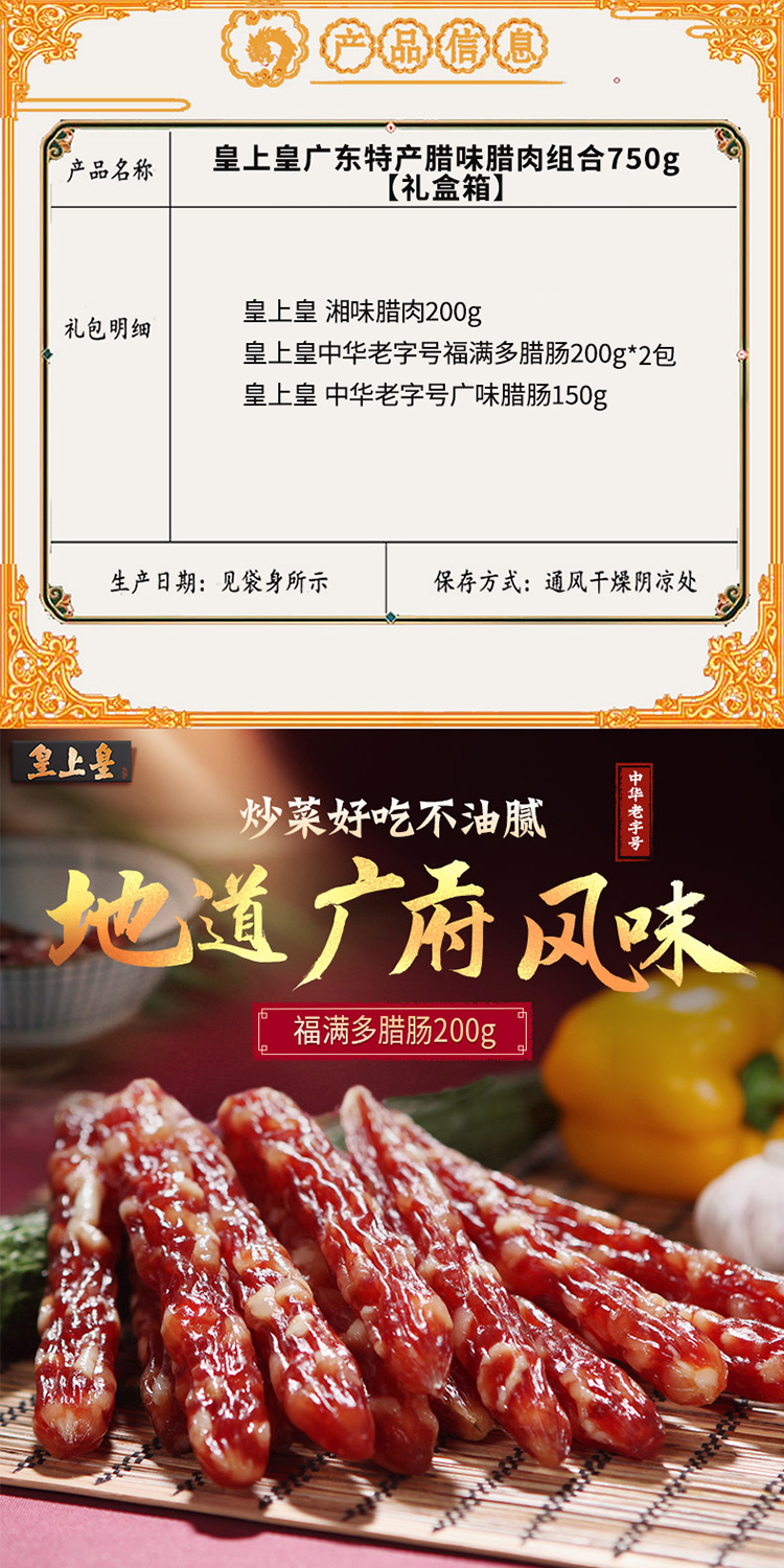 商品名称:【京东配送】皇上皇广东特产腊味腊肉组合750g