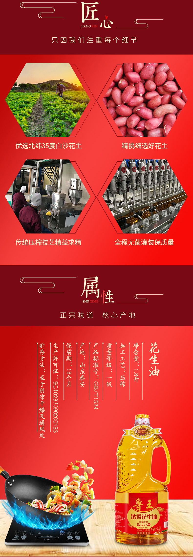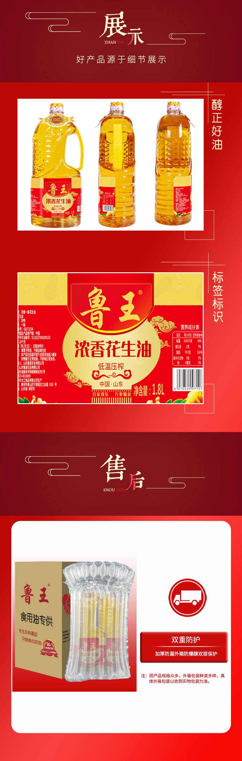 商品名称:鲁王低温压榨浓香花生油1.8L*2桶