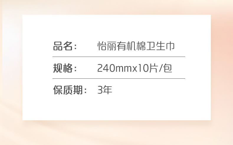 商品名称:ELIS/怡丽有机棉240mm卫生巾10片*8包