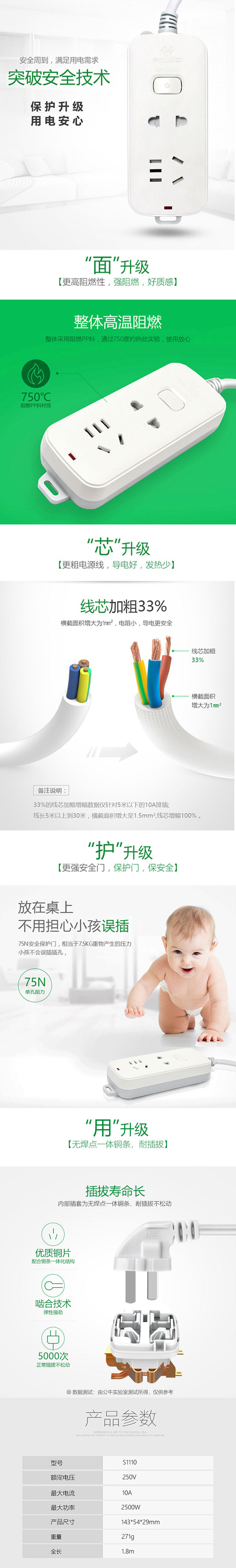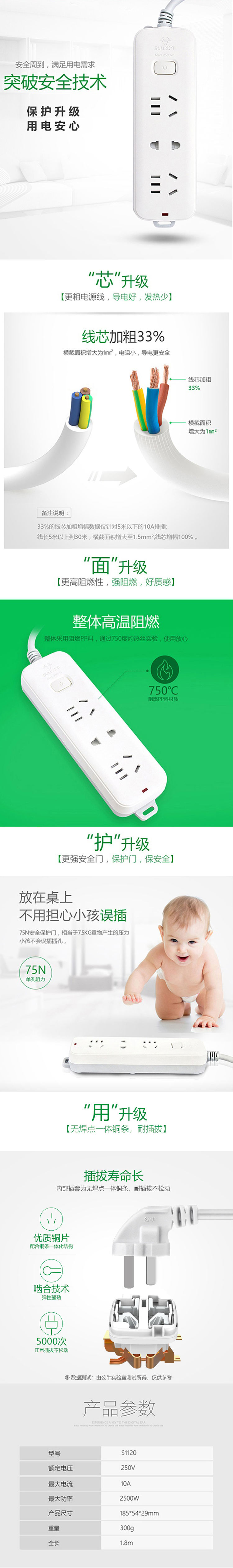 商品名称:BULL/公牛延长线插座三件套S1110+S1120+S1220