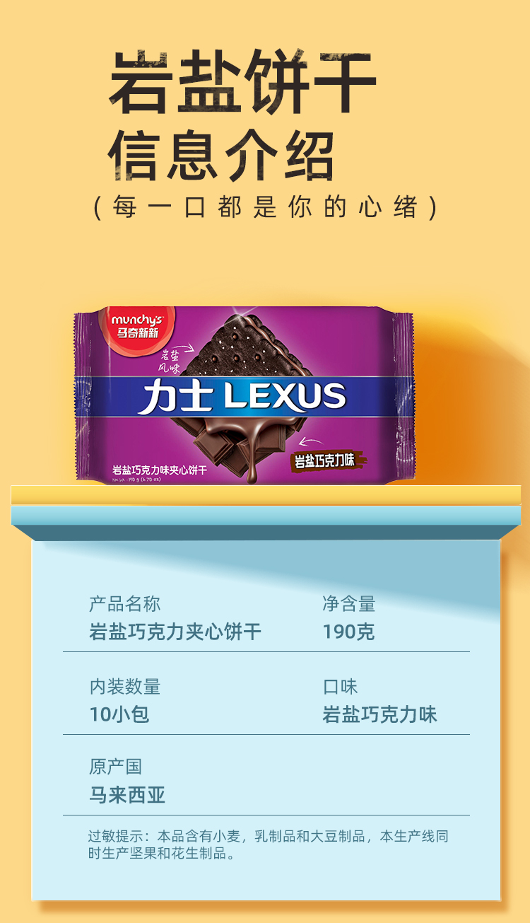 商品名称:munchy's/马奇新新马来西亚进口力士岩盐巧克力夹心饼干190g*4袋