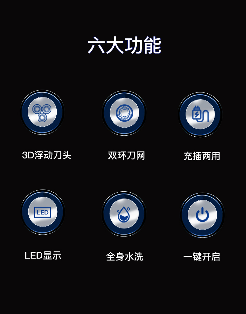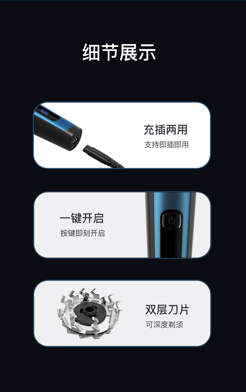 商品名称:RIWA/雷瓦三刀头快充剃须刀RA-5306