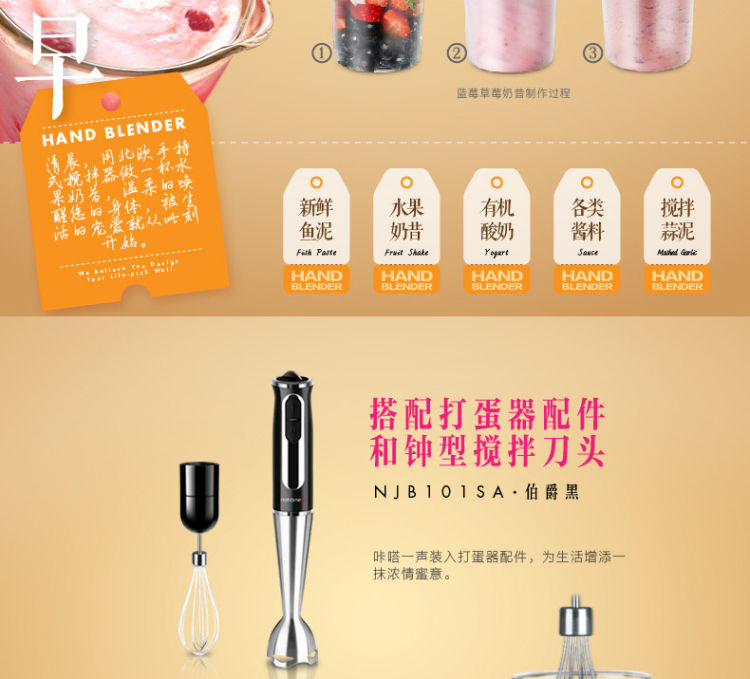 商品名称:nathome/北欧欧慕手持搅拌器NJB101SA