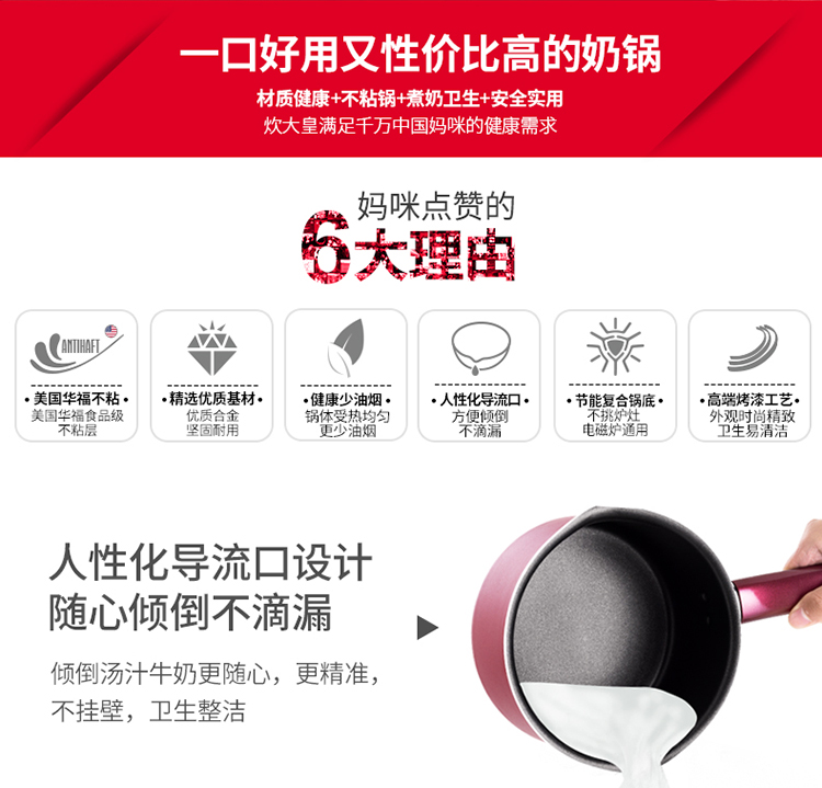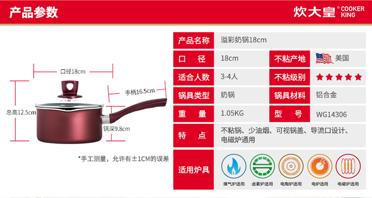 商品名称:COOKERKING/炊大皇18cm溢彩奶锅WG14306
