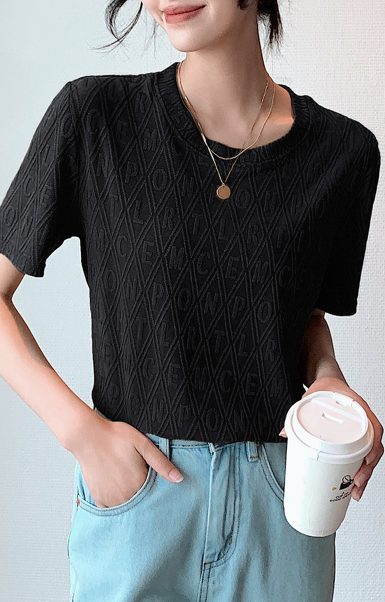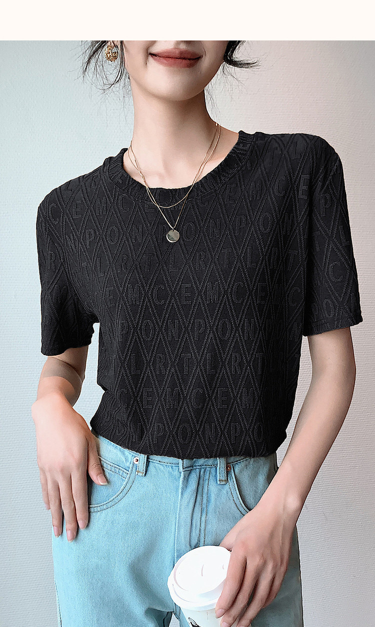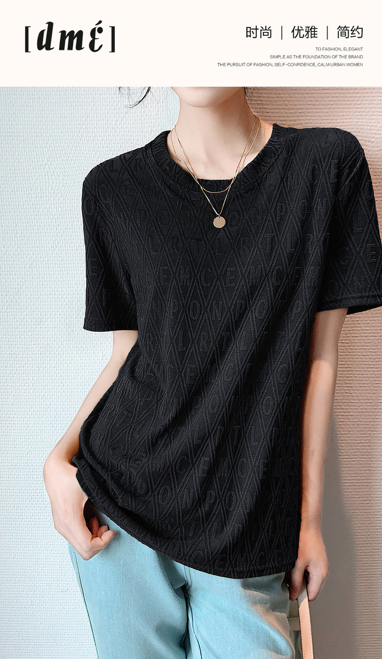 商品名称:【通勤字母提花女式t恤】夏季通勤微弹短袖t恤女 311809