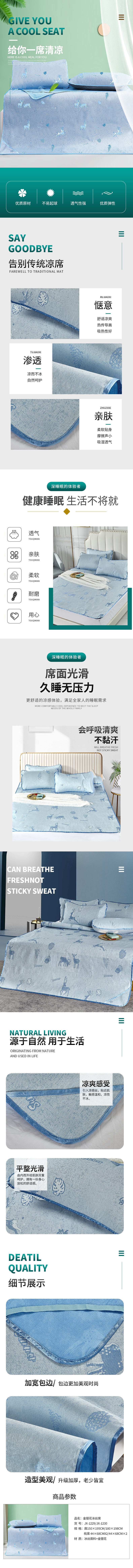商品名称:KINTHERI/金丝莉金银花冰丝凉席三件套