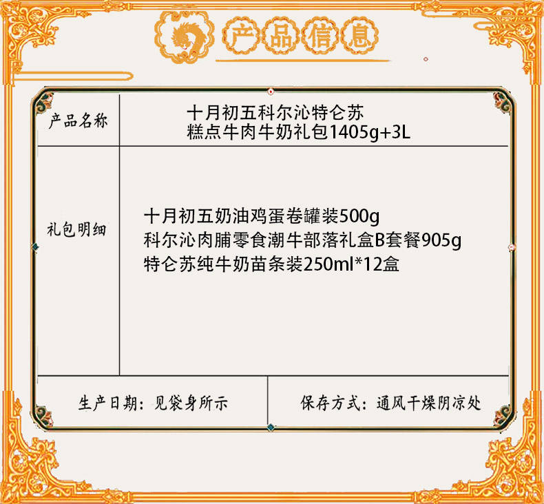 商品名称:【京东配送】十月初五科尔沁特仑苏糕点牛肉牛奶礼包1405g+3000ml