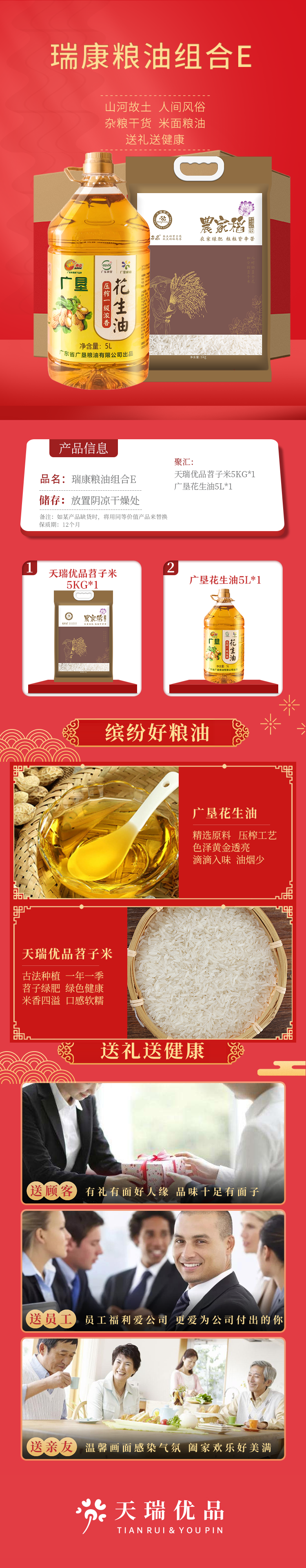 商品名称:天瑞优品广垦瑞康粮油组合E款5kg+5L