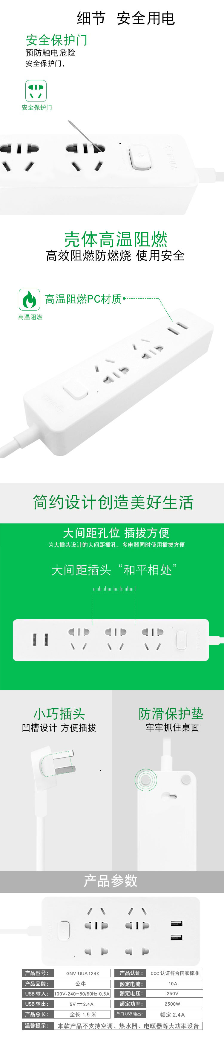 商品名称:BULL/公牛1.5米USB智能插座GNV-UUA124X