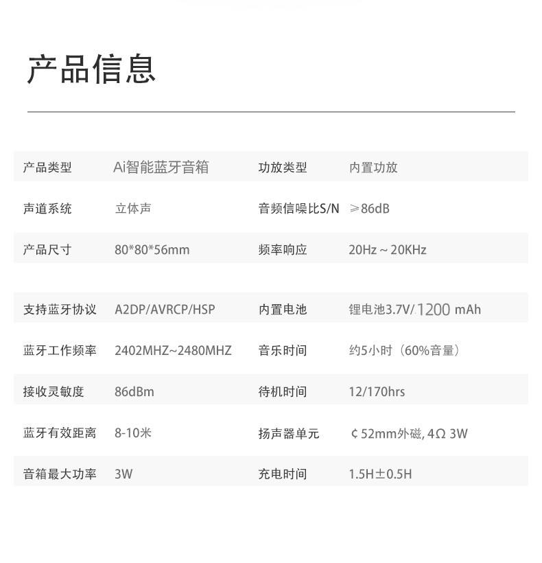 商品名称:HYUNDAI/现代Ai智能蓝牙音箱YH-F006 白色