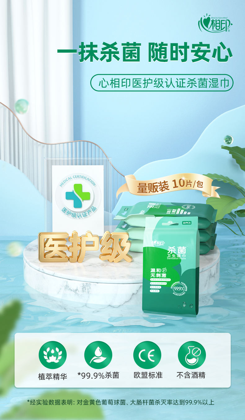 商品名称:心相印卫生系列杀菌湿巾10片*12包