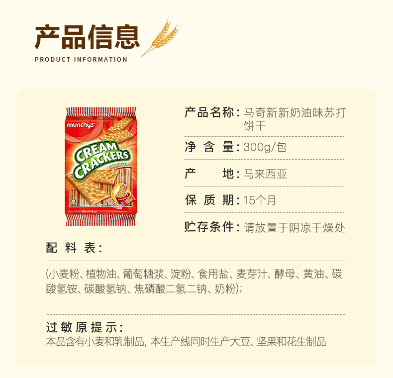 商品名称:munchy's/马奇新新马来西亚进口正方卜甜脆奶油咸味苏打饼干组合1380g