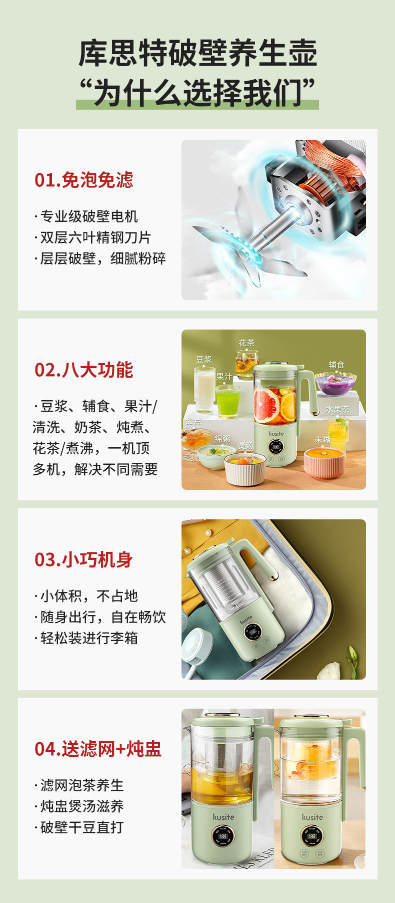 kusite/库思特400毫升迷你破壁养生壶YS7
