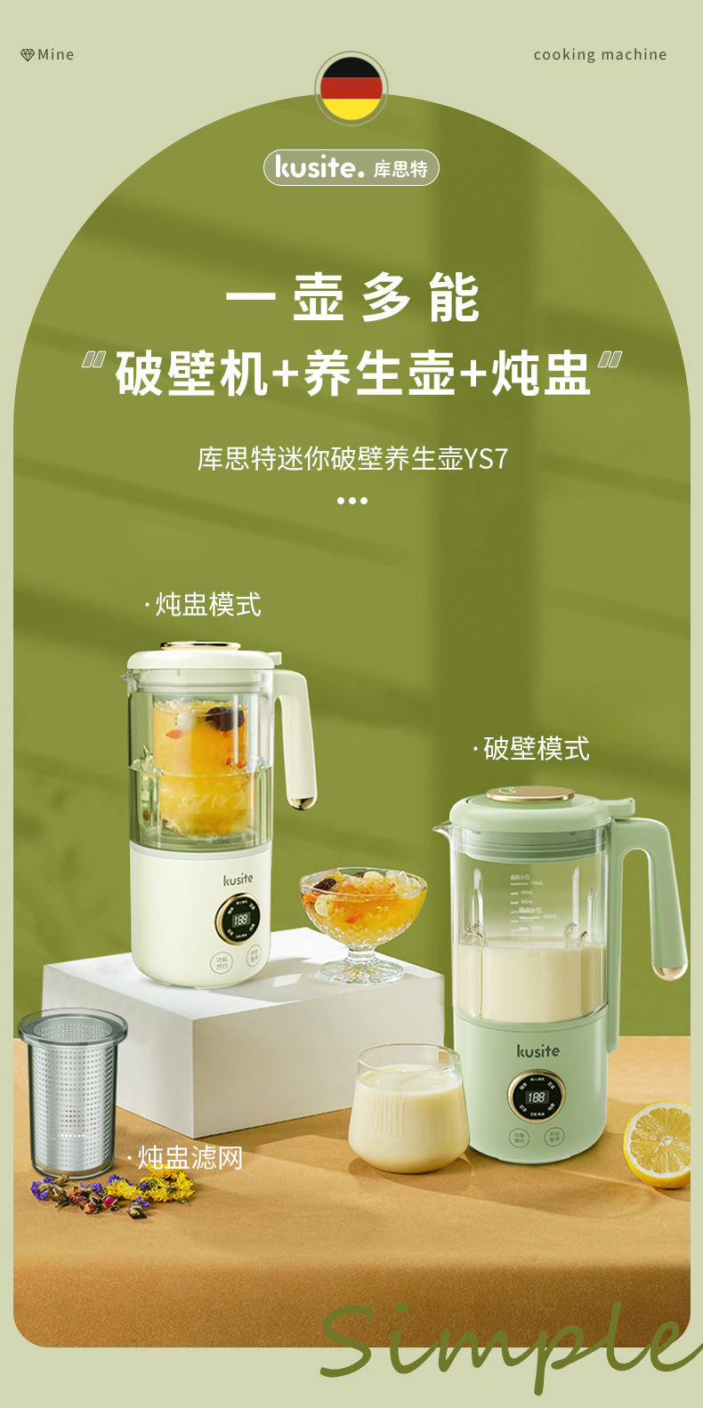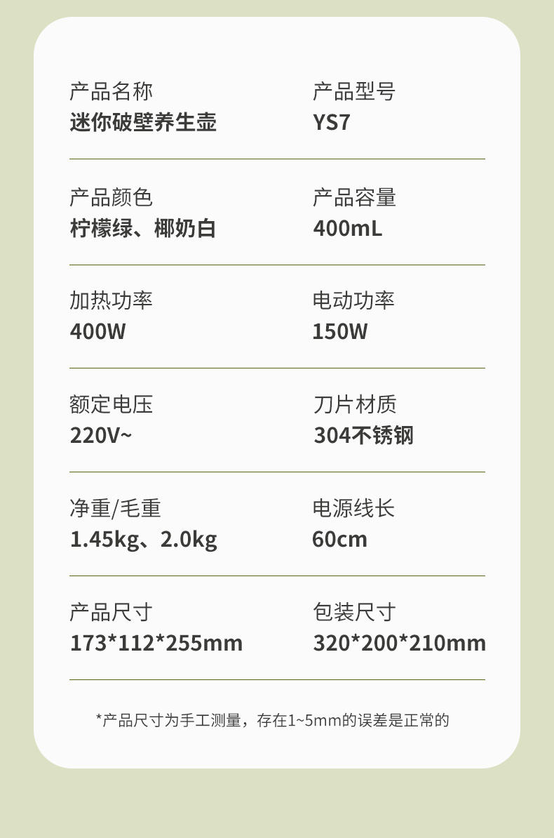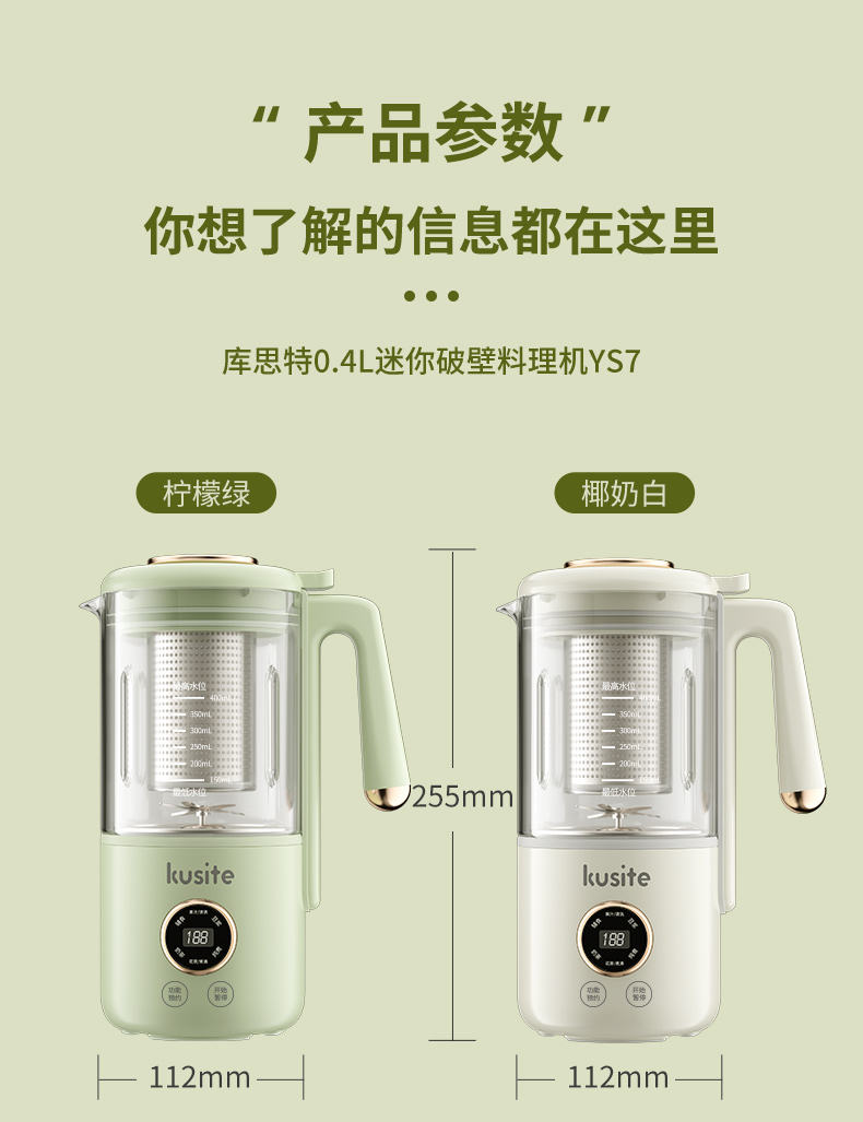 商品名称:kusite/库思特400毫升迷你破壁养生壶YS7