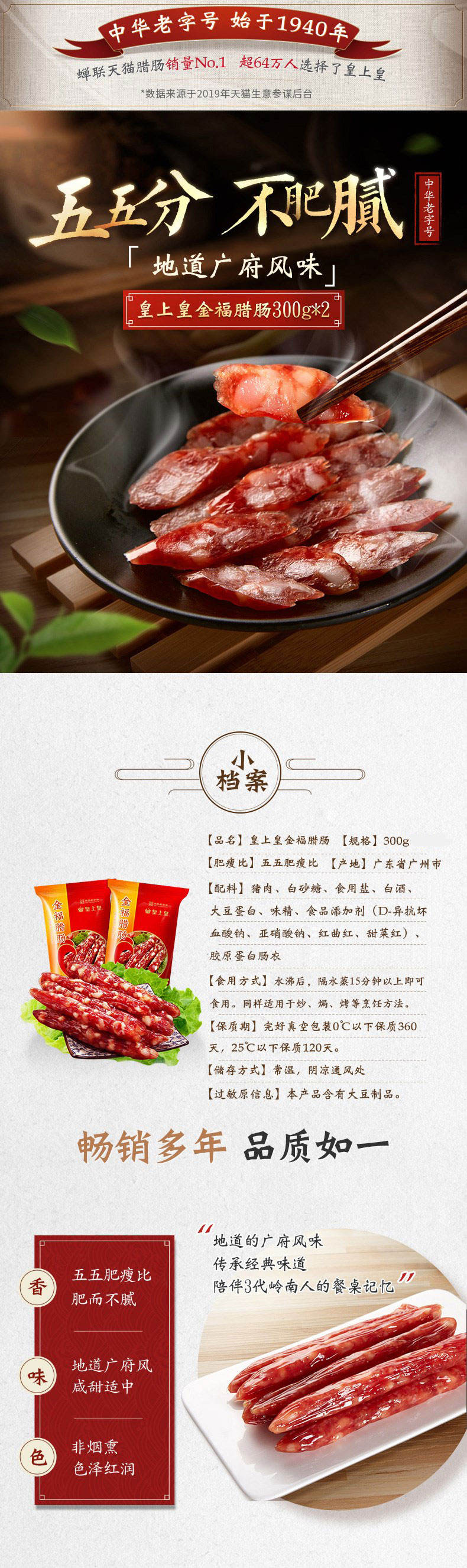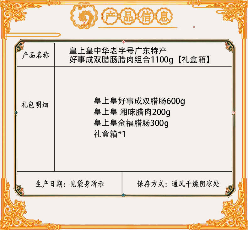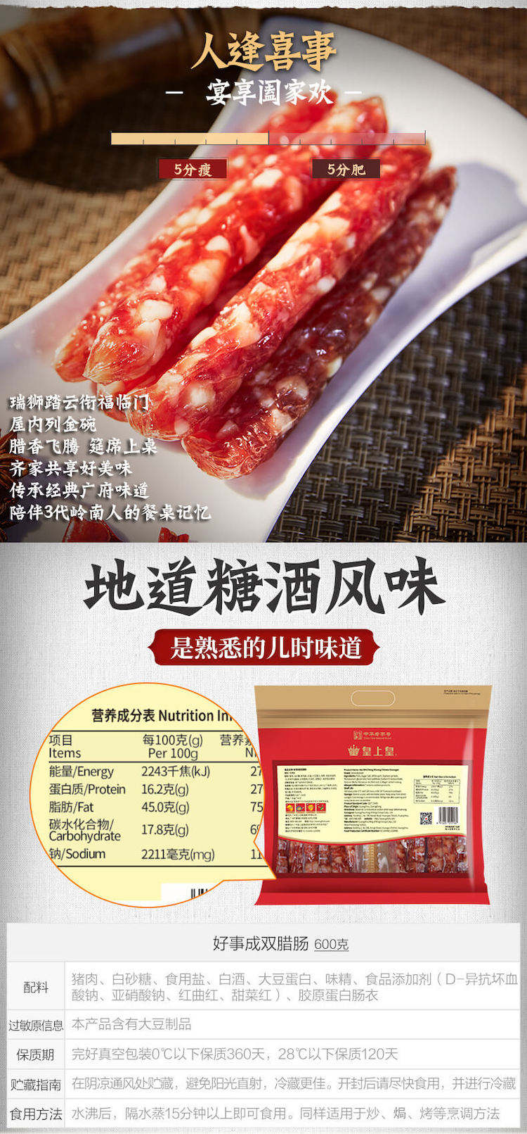 商品名称:(京东配送)皇上皇中华老字号广东特产好事成双腊肠腊肉组合1100g