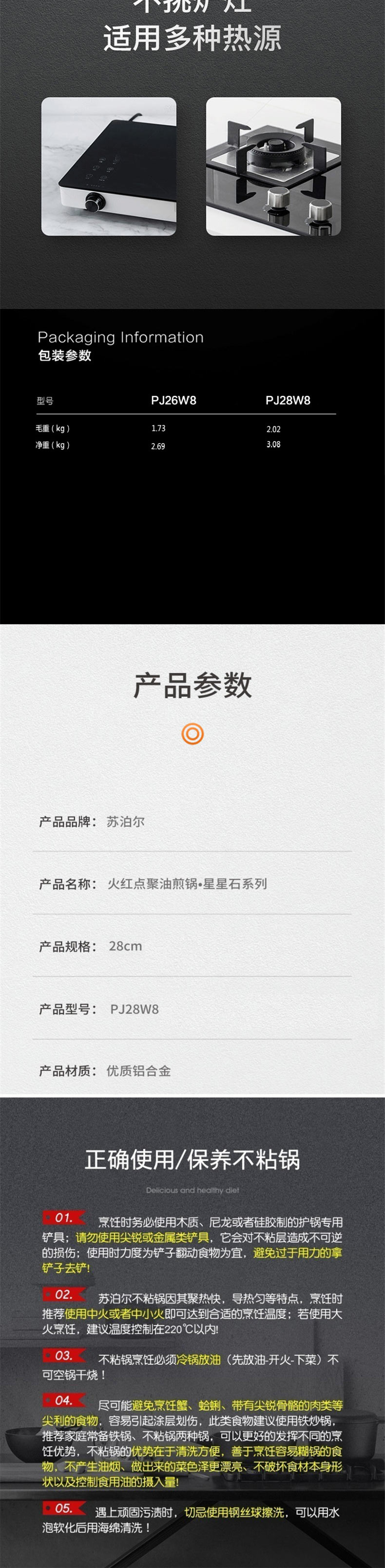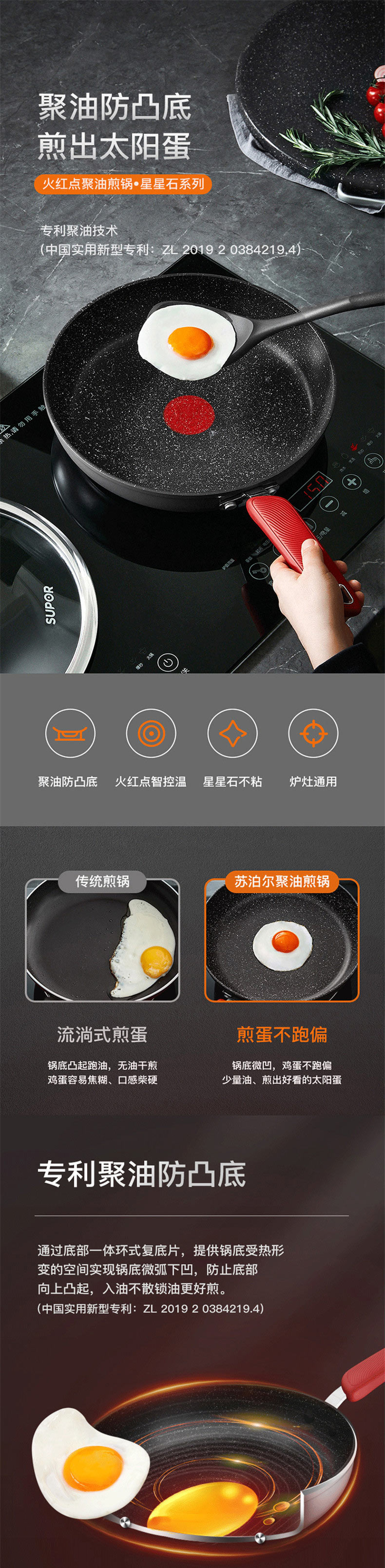商品名称:【顺丰配送】SUPOR/苏泊尔28cm星星石系列带盖火红点聚油煎锅PJ28W8