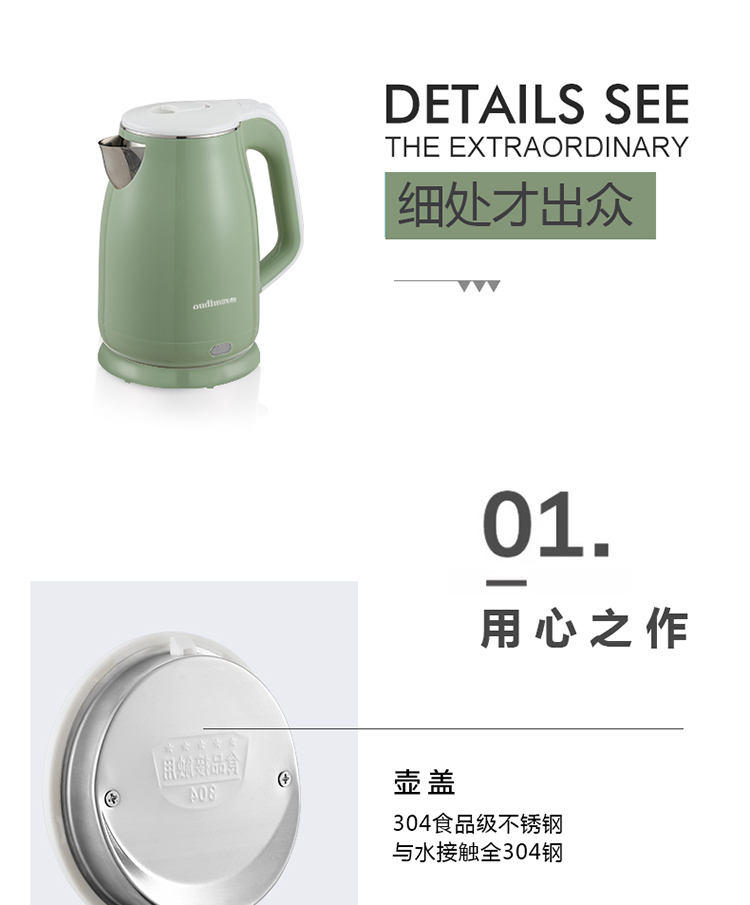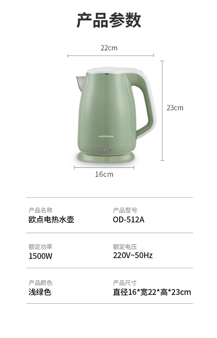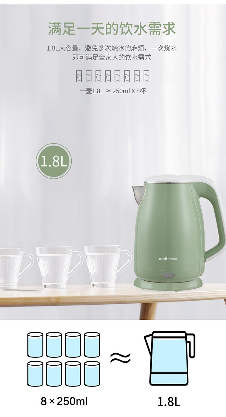 oudim/欧点1.8升电热水壶-浅绿色OD-512A