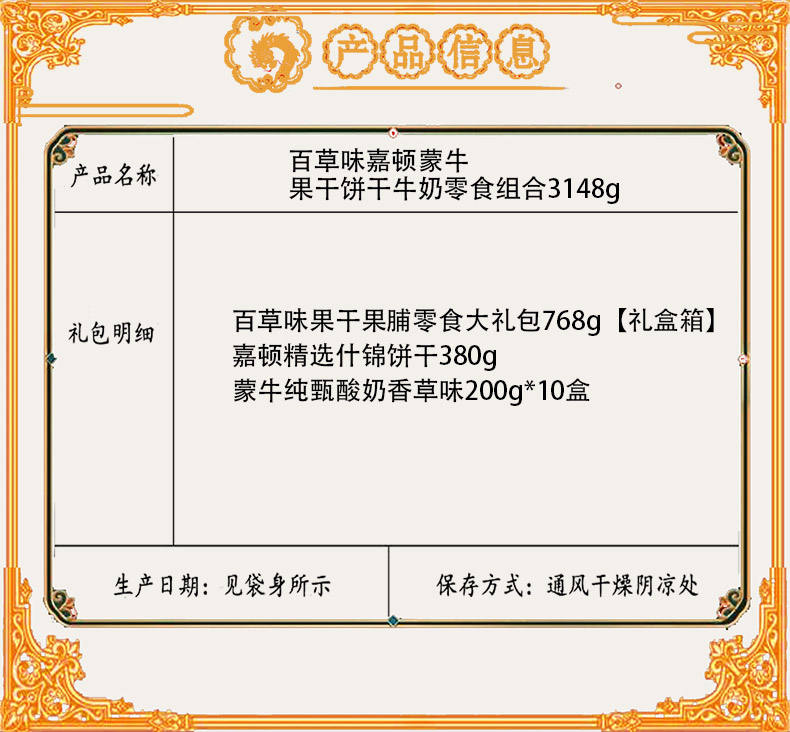 商品名称:【京东配送】百草味嘉顿蒙牛果干饼干牛奶零食组合3148g