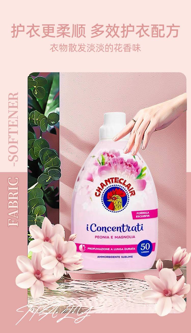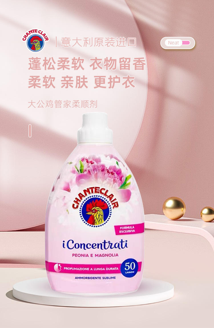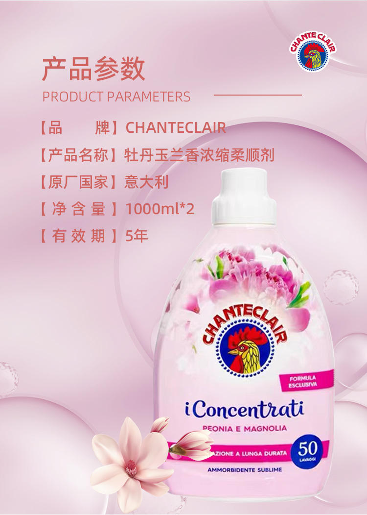 商品名称:CHANTECLAIR/大公鸡管家浓缩柔顺剂-牡丹玉兰香1000ml*2瓶