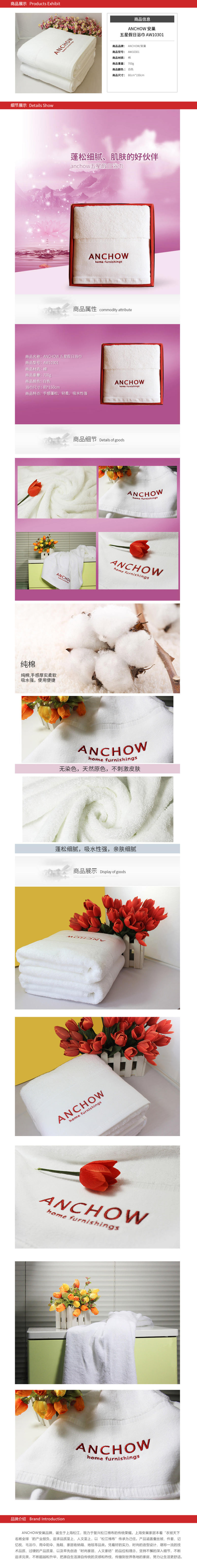商品名称:ANCHOW/安巢全棉五星假日浴巾1条装AW10301 白色
