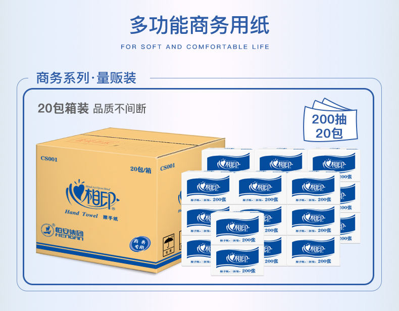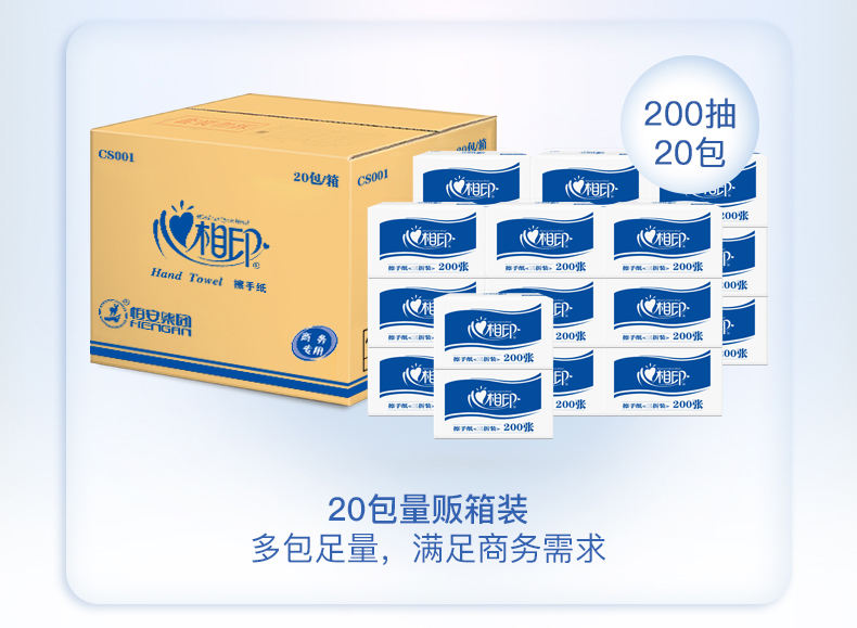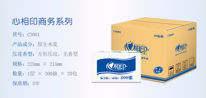 商品名称:心相印商务系列擦手纸整箱1层200抽*20包