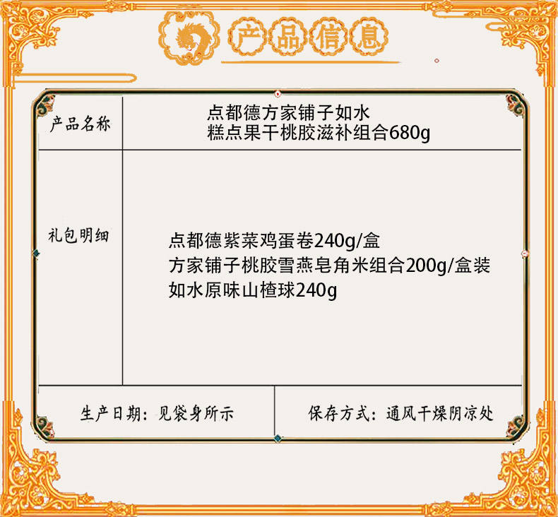 商品名称:【京东配送】点都德方家铺子如水糕点果干桃胶滋补组合680g